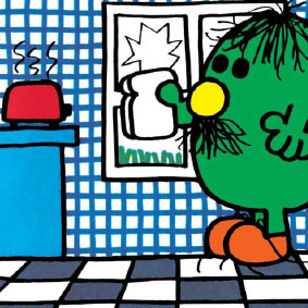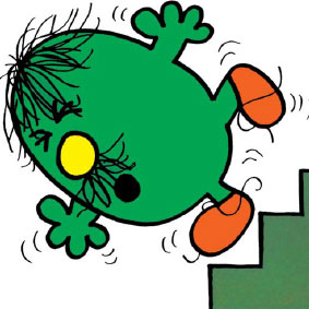 Mr. Clumsy has a lot of hair for a Mr. Men